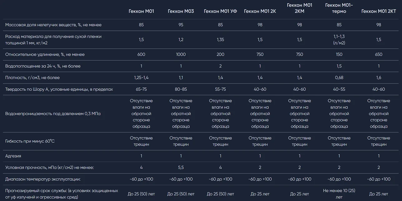 В зависимости от состава, мастика сохраняет свойства при температурах от -50°C до +100°C, не теряя эластичность и защитные характеристики.
